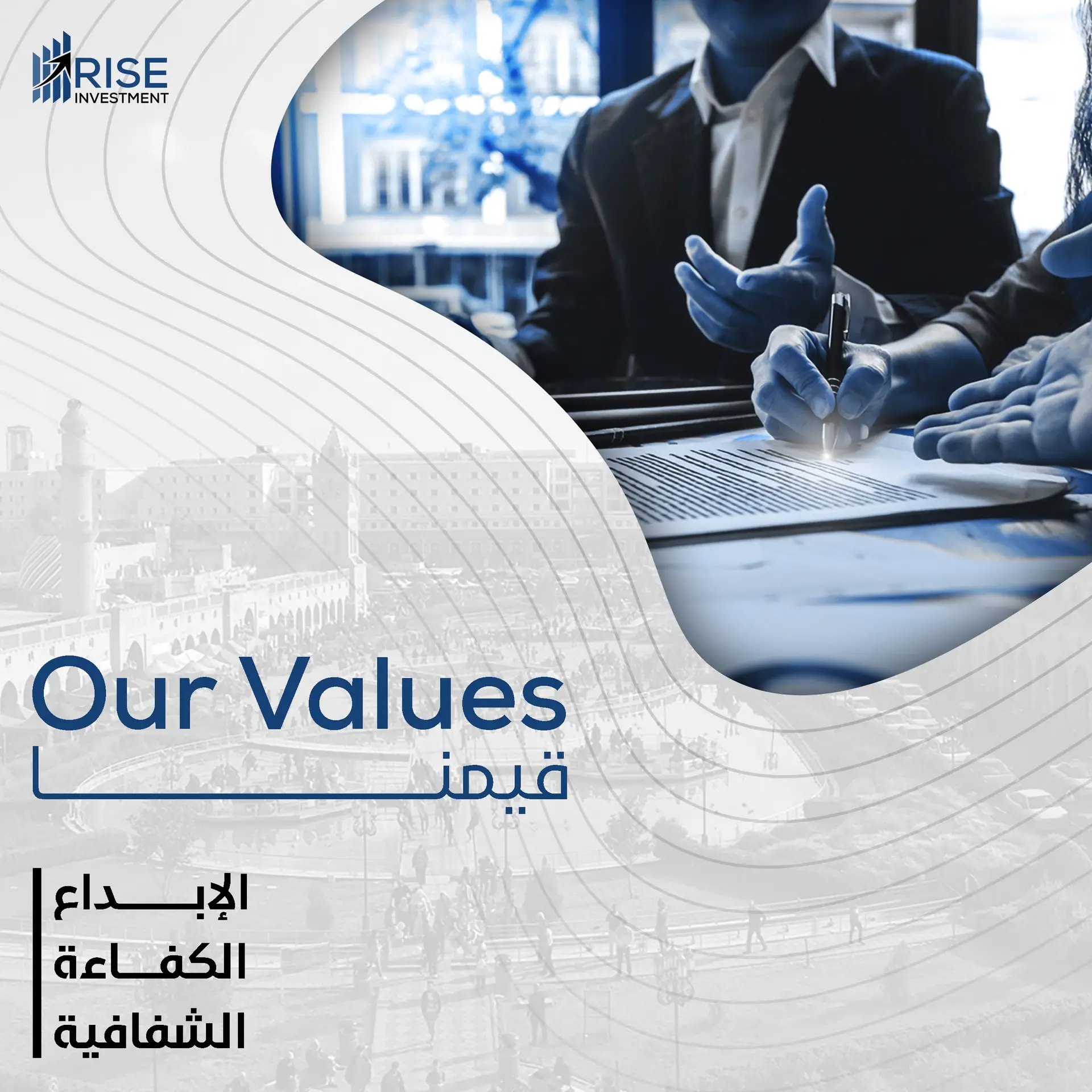 أنبثقت من شركة أعمار الوسط لتوفير خدمات الأستثمار التساهمي للمستثمرين في العراق لجميع الشرائح (صغار وكبار المستثمرين) جميع المشاريع التي سيتم ادراجها ضمن رايز ستتمتع بموثوقية عالية ماليا عن طريق دعم أسهم تلك المشاريع بنسبة في العقارات المقامة عليها مع وجود بنك ضامن لمتابعة صرف أموال وتنفيذ تلك المشاريع بما يضمن أعلى درجات الأمان للمستثمر المحلي والدولي.