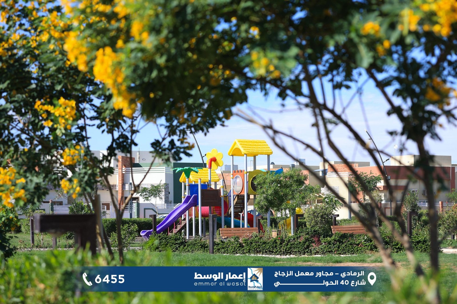 يقع المشروع في مركز مدينة الرمادي وفي احد ارقى مناطقها , يتميــــــــــــزالمشروع بمستوى انهاءات فخم جداً كما يتميز بوجود مجمع تجاري كبيــــــر متعدد الطوابق يحتوي على ماركت وصالـــة رياضية ومجمع طبــــــي راقــــــي